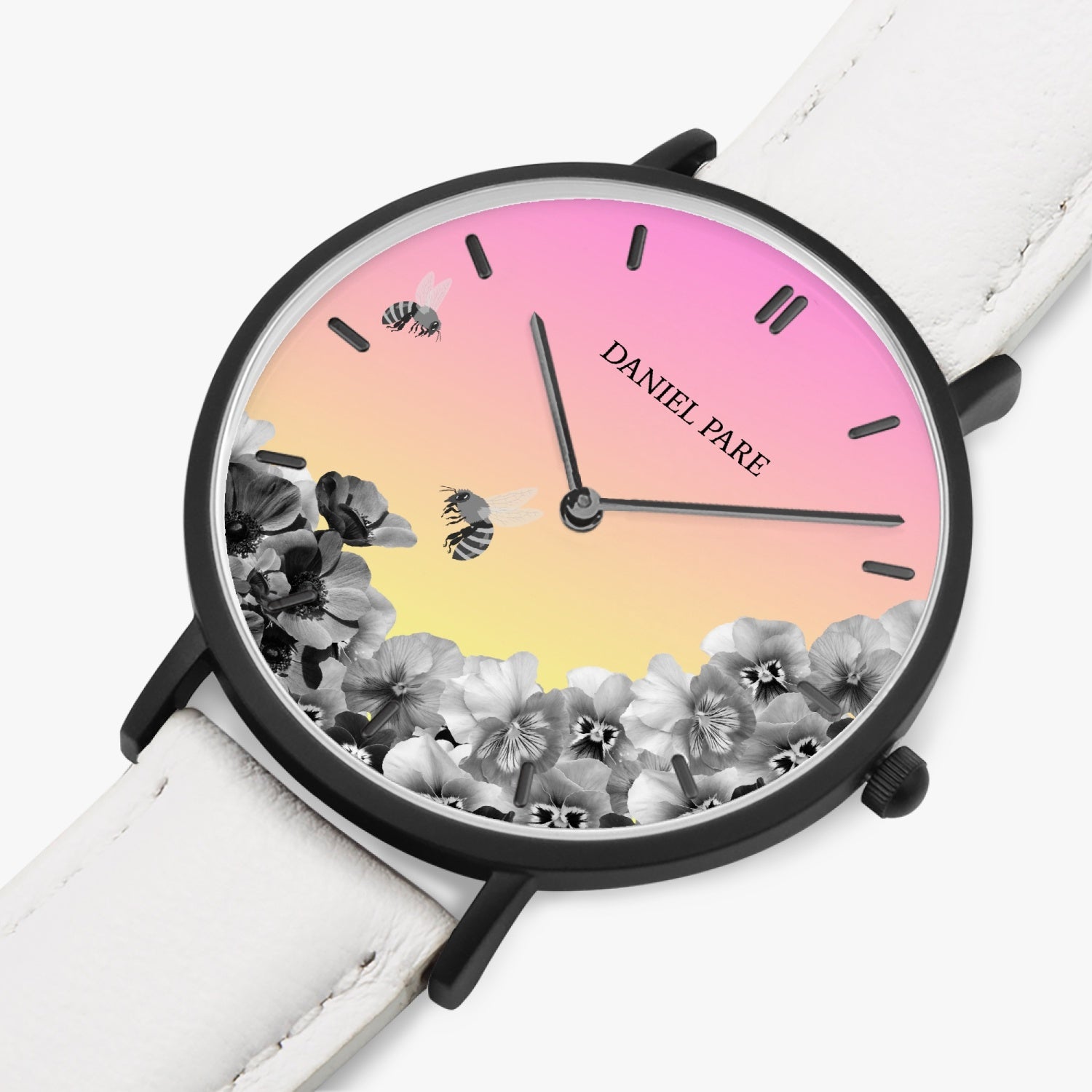 Florescence 38mm Classic White Leather Strap Watch For Her